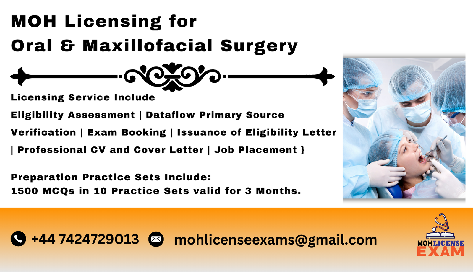 - Our MOH Licensing Package simplifies the process to work as a Oral And Maxillofacial Surgery.