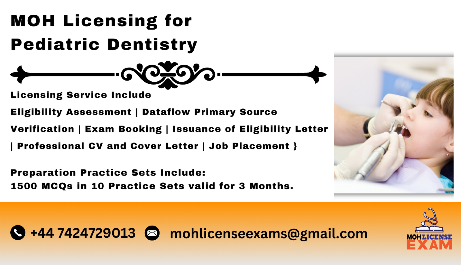 - Our MOH Licensing Package simplifies the process to work as a Pediatric Dentistry.
