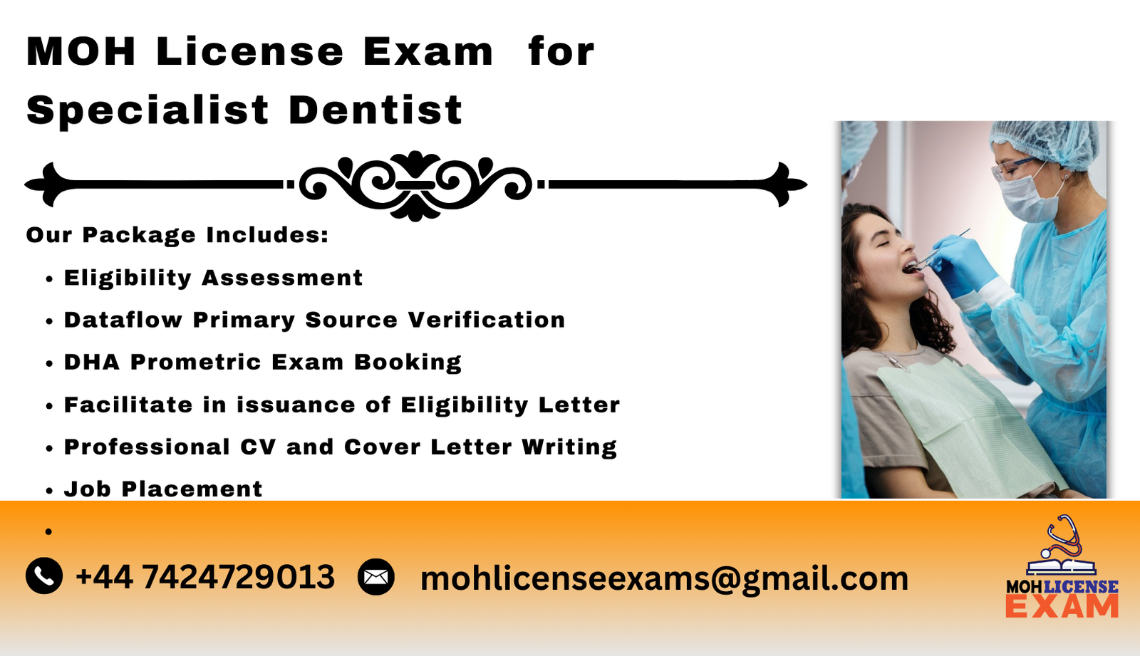 - Our MOH Licensing Package simplifies the process to work as a Orthodontics.